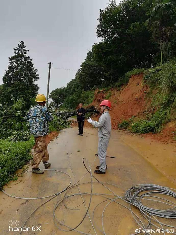 湖南連續(xù)遭遇暴雨天氣,導(dǎo)致山體滑坡,百年大樹被連根拔起壓斷電力線路,國網(wǎng)新寧電力公司馬上組織員工進(jìn)行搶修,保證電力供應(yīng)。
