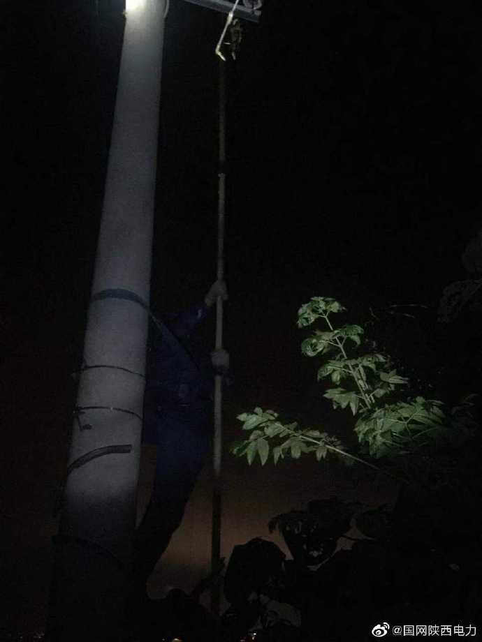 【風停了,雨住了,燈又亮起來了】7月22日,風雨過后,借著手電筒的亮光,國網安康供電公司高新支公司搶修小哥,用長長的絕緣桿合上了架在桿頂?shù)?0千伏雙聯(lián)支線絲具,恢復故障線路供電。靜悄悄的夜里,燈亮了,搶修小哥笑了。