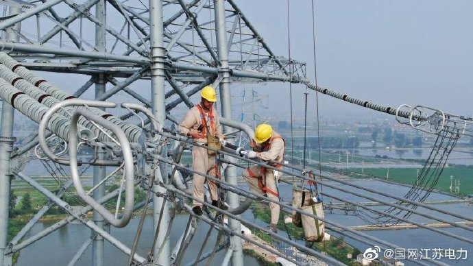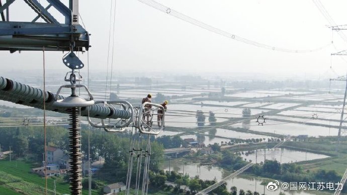 【戰(zhàn)高溫 裝設(shè)備 保投運(yùn)】7月26日,江蘇省送變電有限公司特高壓運(yùn)檢分公司的工作人員克服高溫天氣影響,在1000千伏泰吳線上安裝輸電線路分布式故障診斷裝置,該裝置在輸電線路發(fā)生故障后能快速、準(zhǔn)確地找到故障點(diǎn)并正確判斷出故障類型,為長(zhǎng)江GIL管廊調(diào)試和1000千伏泰吳線投運(yùn)保駕護(hù)航 ????。