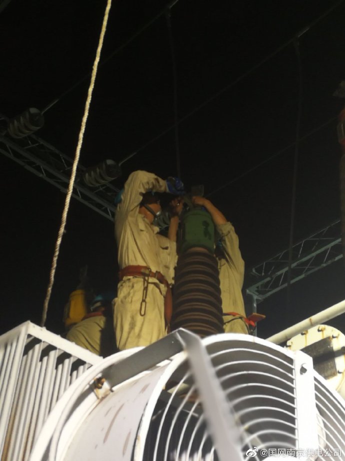 南京供電公司深夜零點(diǎn)維修110千伏馬群變1號(hào)主變高壓側(cè)B相溫度達(dá)到115℃套管
