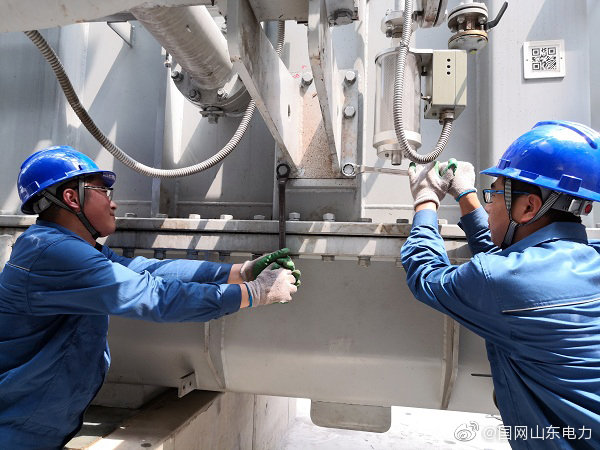 【高溫堅(jiān)守作業(yè) 促電網(wǎng)工程早日投產(chǎn)】7月31日,國網(wǎng)德州供電公司工作人員完成220千伏晏城站1號(hào)主變壓器安裝工作。本次作業(yè)從變壓器進(jìn)場到安裝完成歷時(shí)7天的時(shí)間,該工程完工后將為220千齊河伏晏城變電站新增一處電源點(diǎn),有效提升該站的供電可靠性。 ????