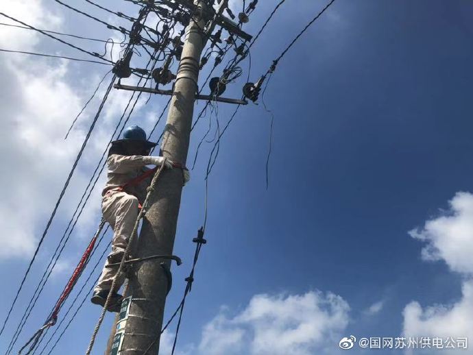 8月6日上午,國網(wǎng)蘇州市吳江區(qū)供電公司松陵供電所搶修人員在新營1號變拆除存在安全隱患的廢舊線路。拆除廢舊線路工作可消除老舊跨越線路的安全隱患,避免線路退役后,長期無人運(yùn)行維護(hù)引發(fā)的倒桿、電線事故,有效保障了其它電力線路的安全運(yùn)行和行人人身安全。