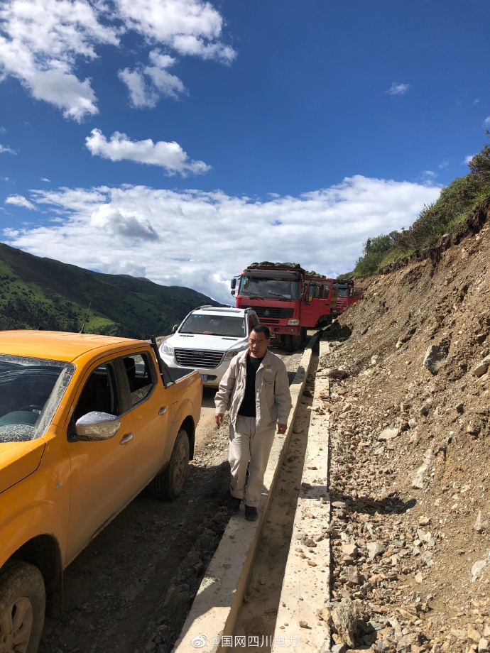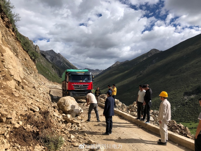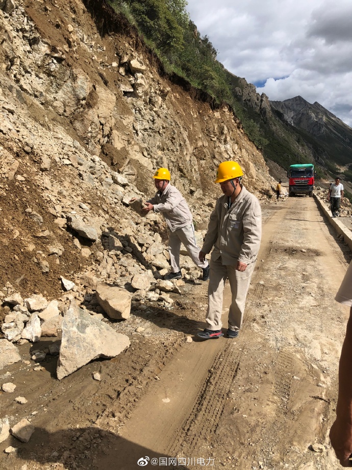 由于近期雨水多,地質(zhì)災(zāi)害頻發(fā),35千伏亞日貢變電站10千伏亞西線914開關(guān)跳閘頻繁,因通訊不暢,所以必須人員到站恢復(fù)送電。該站單邊車程5個小時,圖為8月3日,國網(wǎng)甘孜供電公司巴塘運維班在前往35千伏亞日貢變電站復(fù)電途中路遇飛石、塌方,運維人員主動下車幫助清理道路上的石頭。