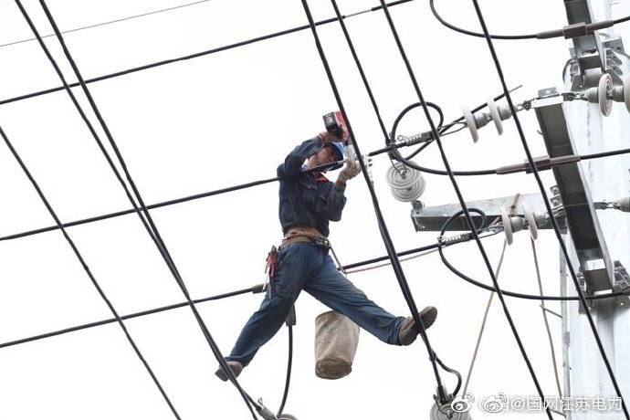 8月8日,國網張家港市供電公司員工在南豐鎮(zhèn)東沙乙線為150號桿更換絕緣導線。該工程為沿江公路南延10千伏線路遷移工程,此次遷改將確保市政建設改造及時完成。 ????