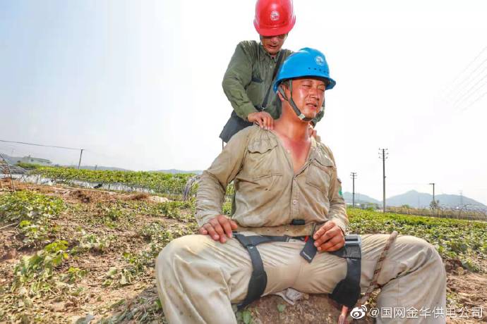 此次輕度中暑,經(jīng)過隊員朱瑞堯的緊急施治,楊亮攜徒弟繼續(xù)上桿安裝橫擔(dān)、緊線等作業(yè)。高溫下,連續(xù)作業(yè)長達(dá)10個小時。