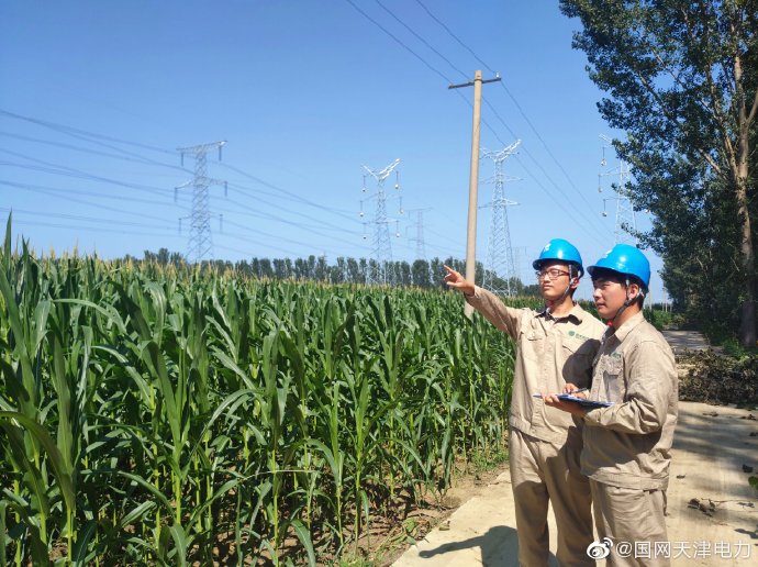 8月19日,天津送變電公司員工李巖、田宇宸在渠陽(寶北)500千伏變電站220千伏出線工程清點(diǎn)通道內(nèi)樹木,提前摸清線路走徑信息,做好驗(yàn)收準(zhǔn)備。