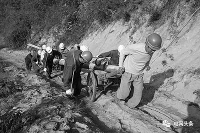 ?在河南山區(qū),當(dāng)年供電員工用架子車?yán)€桿進山。