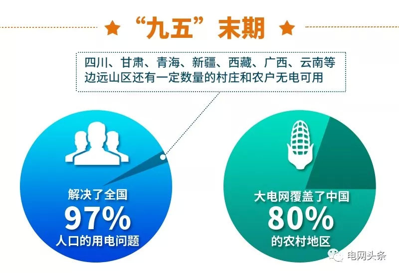 其實在“九五”末期,我國農(nóng)村經(jīng)過初級電氣化的大發(fā)展和第一次大規(guī)模的城鄉(xiāng)電網(wǎng)改造,已經(jīng)解決了全國97%人口的用電問題:大電網(wǎng)覆蓋了中國80%的農(nóng)村地區(qū),內(nèi)陸經(jīng)濟發(fā)達的主要省份率先實現(xiàn)了戶戶通電。只有四川、甘肅、青海、新疆、西藏、廣西、云南等地的邊遠山區(qū)還有一定數(shù)量的村莊和農(nóng)戶無電可用。