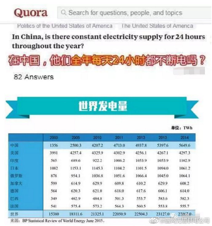 有位印度網(wǎng)友在外國(guó)知乎發(fā)問(wèn)“中國(guó)全年24小時(shí)都不斷電嗎”?網(wǎng)友表示“好久沒(méi)體驗(yàn)停電的感覺(jué)了”。隨著國(guó)家電網(wǎng)積極建設(shè)及西電東送、南北互供等,全國(guó)聯(lián)網(wǎng)格局基本形成,連續(xù)超越發(fā)達(dá)國(guó)家,2011年發(fā)電就成為了世界第一