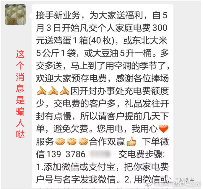 有個異地的小伙伴們說,最近收到了一則“好消息”:【交電費送雞蛋、大米、大豆油……】這送福利力度不小呢?就來求證電蜜蜂啦,事實是:此活動非供電公司組織,也未經(jīng)該公司授權(quán)!再次提醒客戶從正規(guī)渠道交電費,謹防詐騙!