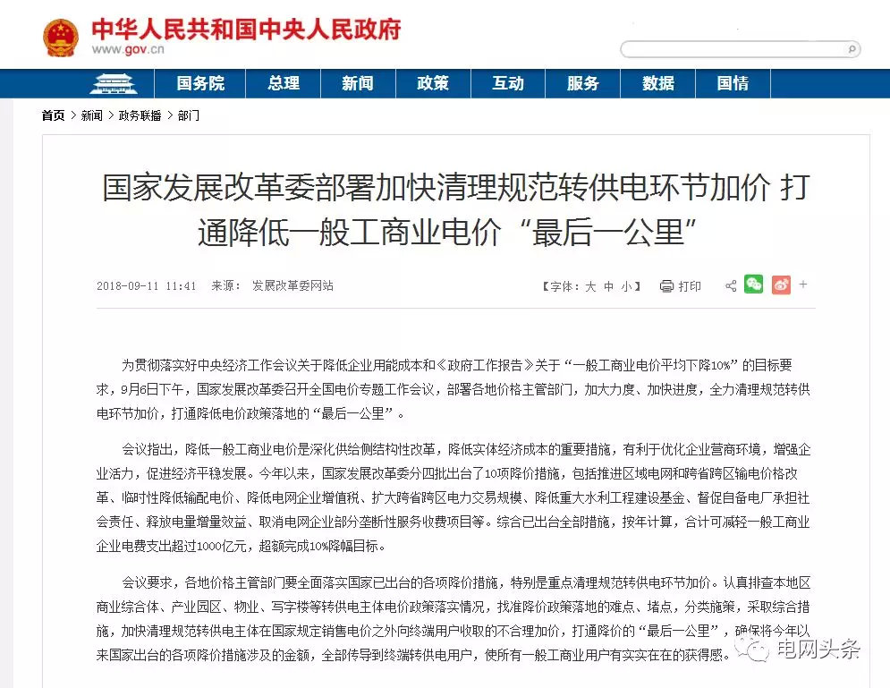2018年4月起,國家發(fā)改委先后發(fā)布了4份降電價文件,特別強調(diào):要將降價的紅利傳導(dǎo)到終端客戶,加快清理規(guī)范轉(zhuǎn)供電主體在國家規(guī)定銷售電價之外向終端客戶收取的不合理加價,打通降價的“最后一公里”。