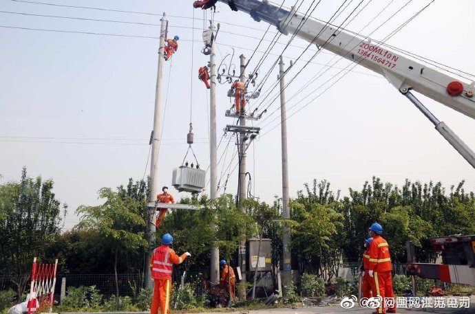 【改造升級農(nóng)網(wǎng) 助力鄉(xiāng)村振興】4月22日,國網(wǎng)東臺市供電公司電力施工人員在東溱東鎮(zhèn)蘇莊村改造蘇莊8臺區(qū)變壓器臺架和400伏供電線路,提高供電質(zhì)量,保障變壓器安全運行,農(nóng)民可靠用電。 ????