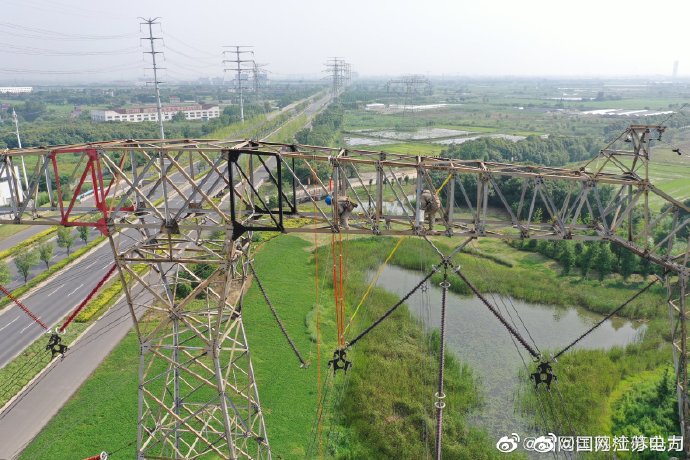 6月28日,國網(wǎng)江蘇檢修公司輸電檢修中心高壓帶電作業(yè)人員登上全國首條500千伏緊湊型雙回路陽珠線。他們運用自主研發(fā)的多功能操作桿更換V型絕緣子串,并取得圓滿成功,填補了500千伏同塔雙回緊湊型輸電線路帶電作業(yè)的空白。 ????