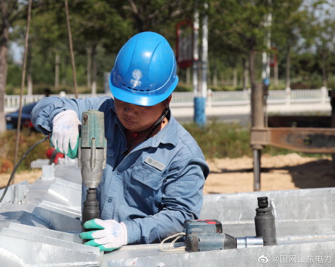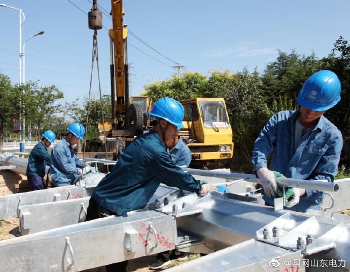 7月3日,在110千伏石虎站10千伏南潘線招辛線雙回架設施工現(xiàn)場,國網(wǎng)招遠市供電公司施工人員冒著37攝氏度高溫進行立塔作業(yè),該工程共計立塔26基,旨在減輕石虎站供電壓力,滿足城區(qū)負荷增長需求,改善110千伏電網(wǎng)結(jié)構(gòu),提高供電可靠性。 ????