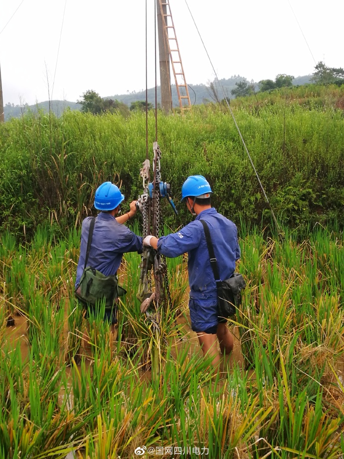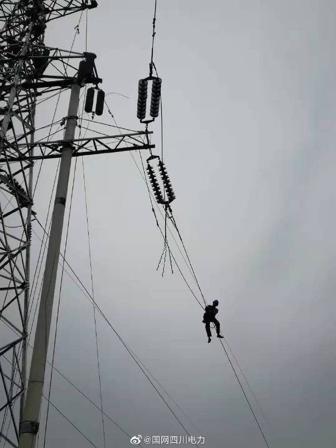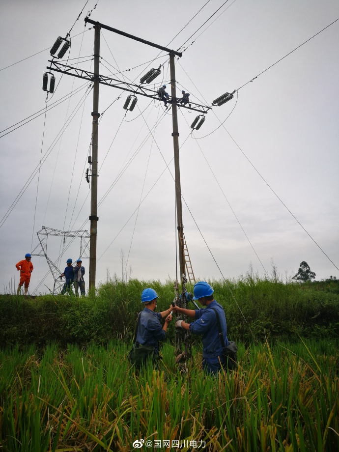 電力工人在塔尖銀線上 田間地頭里 忙得不亦樂乎