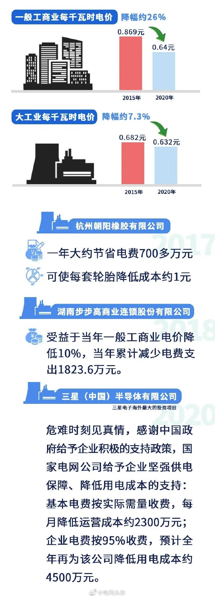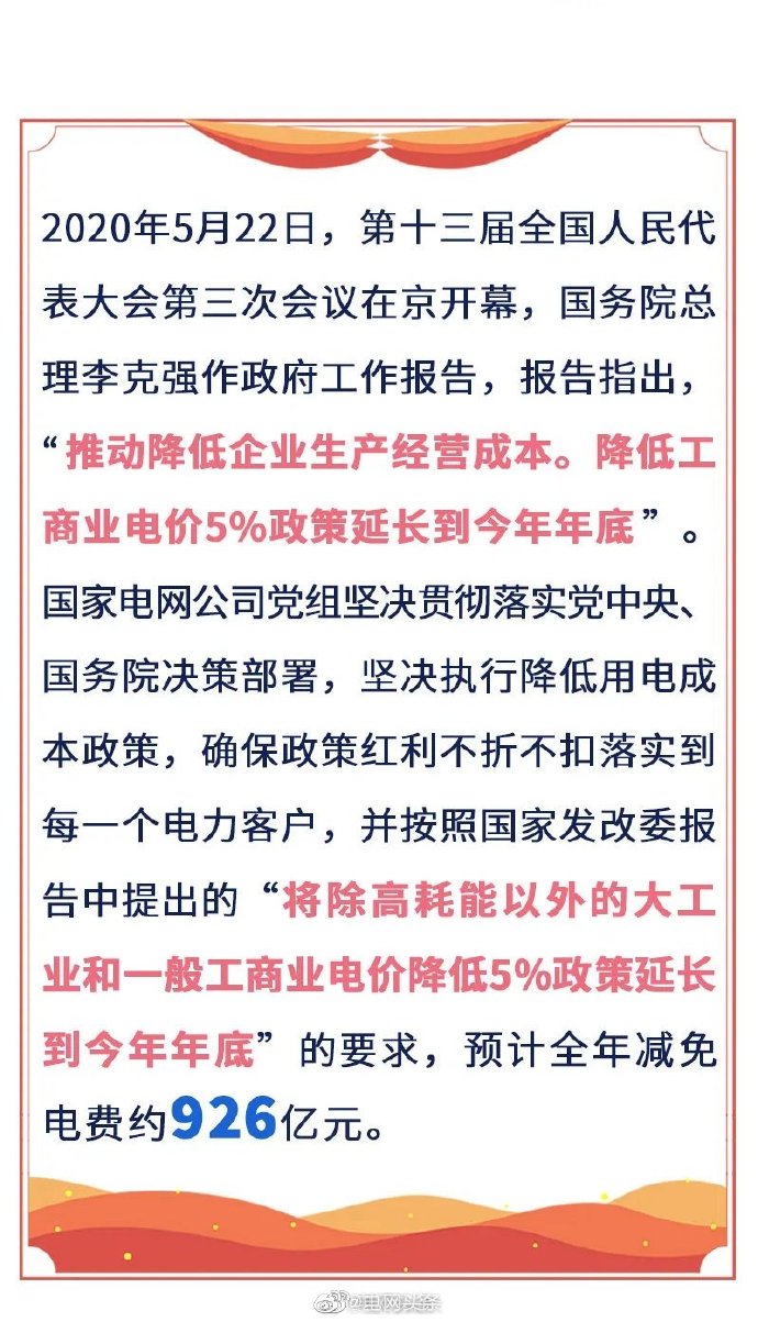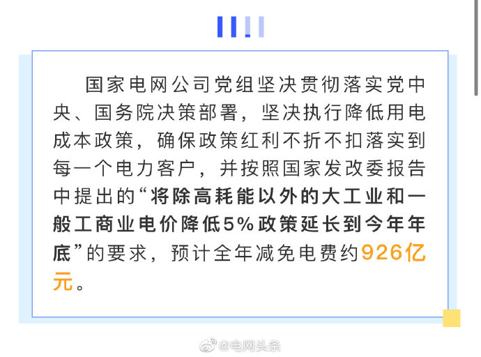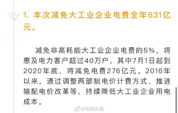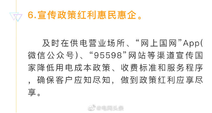 五是電力營商環(huán)境持續(xù)優(yōu)化。實(shí)施優(yōu)化營商環(huán)境兩年行動(dòng)計(jì)劃,世界銀行“獲得電力”指標(biāo)排名從去年的第14位上升至第12位,為我國營商環(huán)境總體排名從46位提高到31位作出貢獻(xiàn)。堅(jiān)決落實(shí)國家降價(jià)降費(fèi)部署,全面完成一般工商業(yè)平均電價(jià)再降低10%任務(wù),降低用戶成本負(fù)擔(dān)641億元。全年有力保障了社會用電需求,實(shí)現(xiàn)迎峰度夏、度冬期間電力供需平穩(wěn)有序。