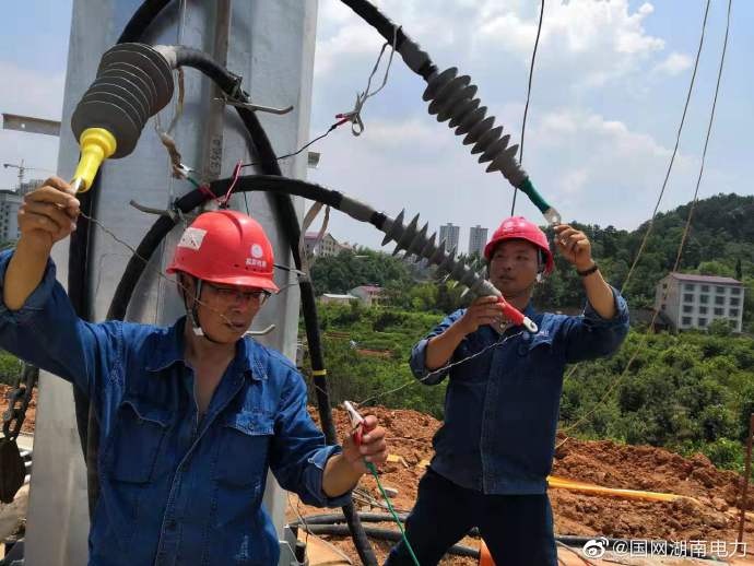藍天白云下電力施工忙。5月30日,國網(wǎng)婁底供電公司的電力蜀黍秉承“人民電業(yè)為人民”的宗旨,犧牲周末休息時間,開展應急項目健緣醫(yī)療配電工程斷路器安裝工作,確??蛻舭踩?、可靠用電。