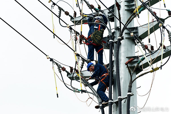 【秋日驕陽熱意濃 帶電消缺保供電】9月5日,濟南市濟陽區(qū)最高氣溫達到31℃,國網(wǎng)濟南市濟陽區(qū)供電公司員工在半空中全副武裝作業(yè),對10千伏曲東線工業(yè)園支線6號桿進行帶電消缺,更換出現(xiàn)故障的隔離刀閘設備線夾,確保該線路安全運行、可靠供電。 ????