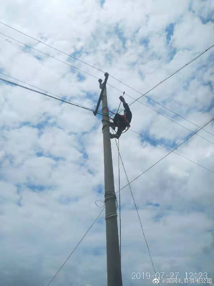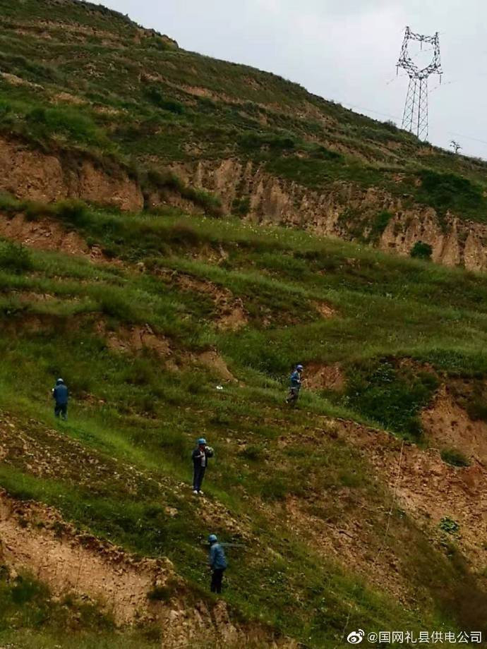 禮縣供電公司正在搶修112燕永線馬山分支山體滑坡倒桿斷線