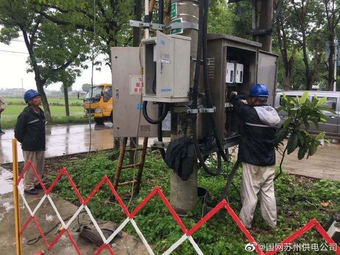 6月10日,國網(wǎng)蘇州供電公司工作人員冒雨對下絲配變開關(guān)維修和TTU安裝作業(yè),有效提高供電可靠率,確保配變安全穩(wěn)定運(yùn)行,為營銷精益化管理、精確線損管理提供可靠依據(jù)。
