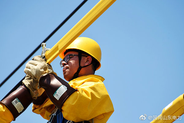 【秋日驕陽熱意濃 帶電消缺保供電】9月5日,濟南市濟陽區(qū)最高氣溫達到31℃,國網(wǎng)濟南市濟陽區(qū)供電公司員工在半空中全副武裝作業(yè),對10千伏曲東線工業(yè)園支線6號桿進行帶電消缺,更換出現(xiàn)故障的隔離刀閘設(shè)備線夾,確保該線路安全運行、可靠供電。 ????