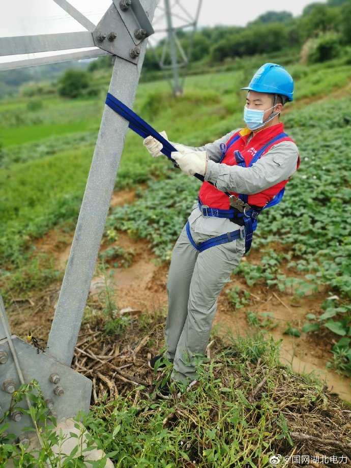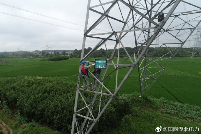 7月9日,國網(wǎng)湖北送變電工程有限公司鐵軍共產黨員服務隊在±800千伏復奉線2132號桿塔粘貼“身份證”(標號牌),隊員們熟練地檢查安全帶之后,高效地完成了安裝工作。